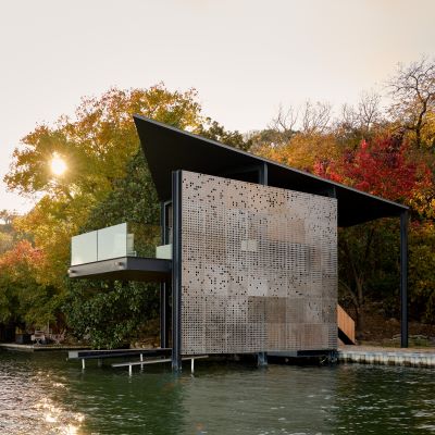 Matt Fajkus’ MArch ’05 practice, Matt Fajkus Architecture , has been awarded a 2023 Design Award of Merit by AIA Austin for their Filtered Frame Dock. The award was presented to the team at the AIA Austin Design Awards Celebration on May 17, 2023. The award presentation included a video with images and commentary from the judges. Watch the video on the AIA Austin YouTube channel .