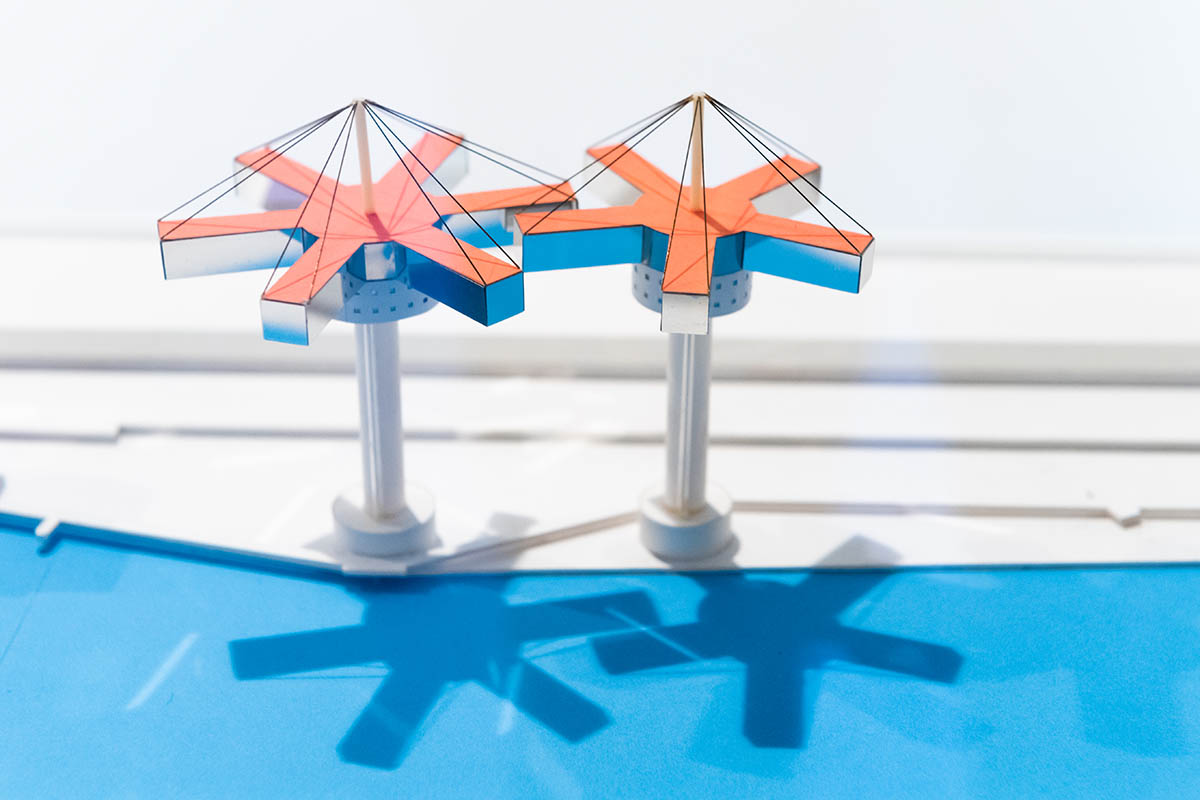 This exhibition on Shinohara’s architecture highlights his nuanced attitude toward the city, which emerged with greater saliency in the late 1970s and reached its apotheosis in the following decade through a series of institutional-scale projects. This position was partly informed by his travels abroad, to Africa, the Americas, and Europe, and by his reading of European cultural criticism. Shinohara labeled this last period the Fourth Style. In an essay published in the journal Kenchiku Bunka in 1988, Shinohara introduced the term “ModernNext.” As a counterpoint to postmodernism, ModernNext was also a commentary on Japan’s Bubble Economy, as the scale and intensity of urban activity reached unprecedented heights. ModernNext was a decisively forward-looking attitude. In the same way tradition formed the basis of innovation for the First Style, chaos and randomness were to instigate a new vitality for architecture and the city.