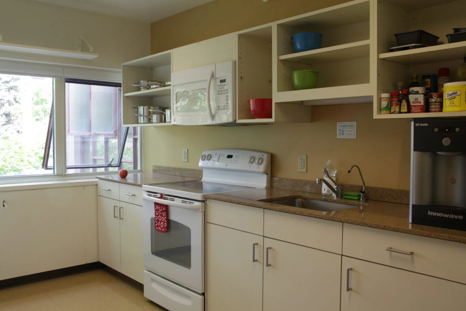 - Communal kitchens are equipped with refrigerators, stove/oven, microwaves, and toasters.
