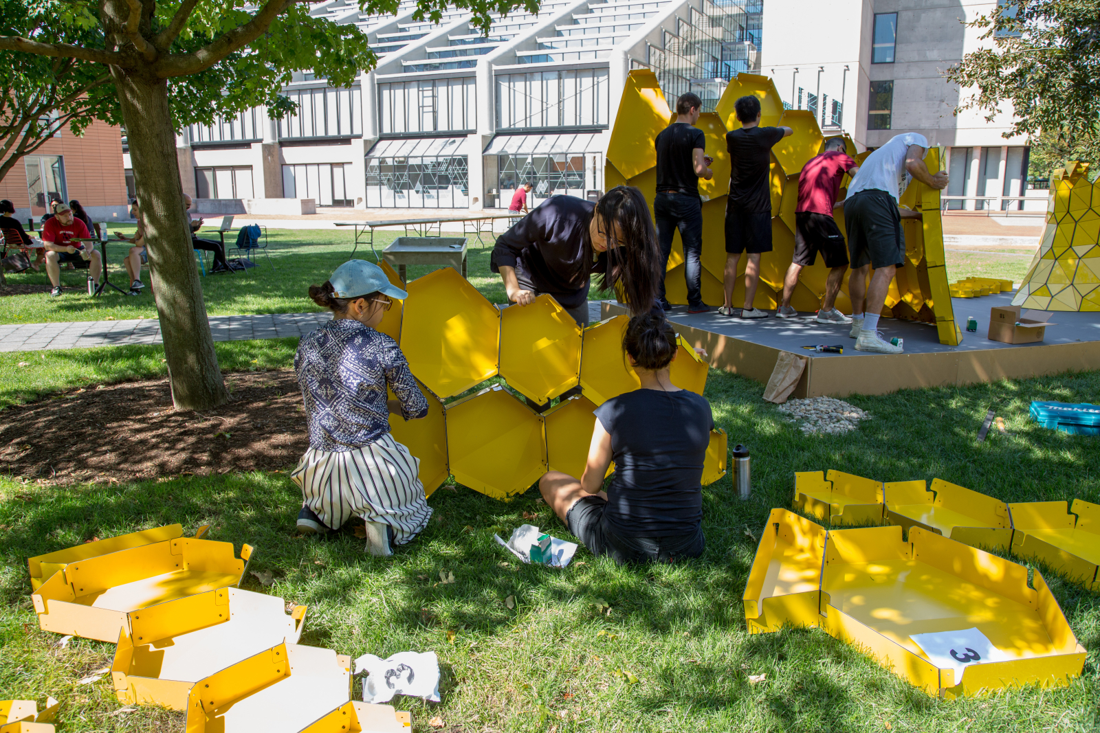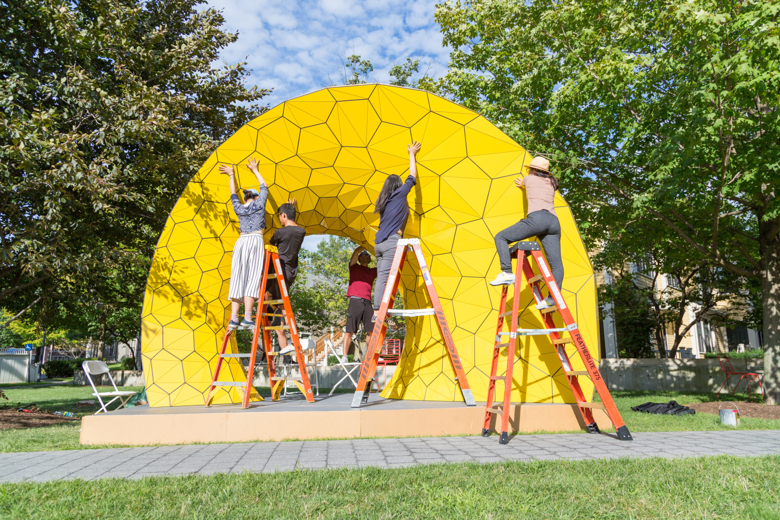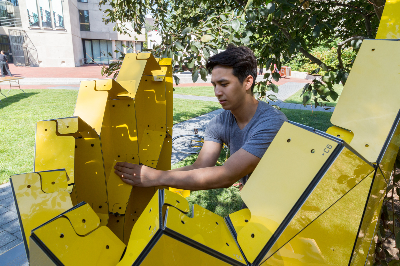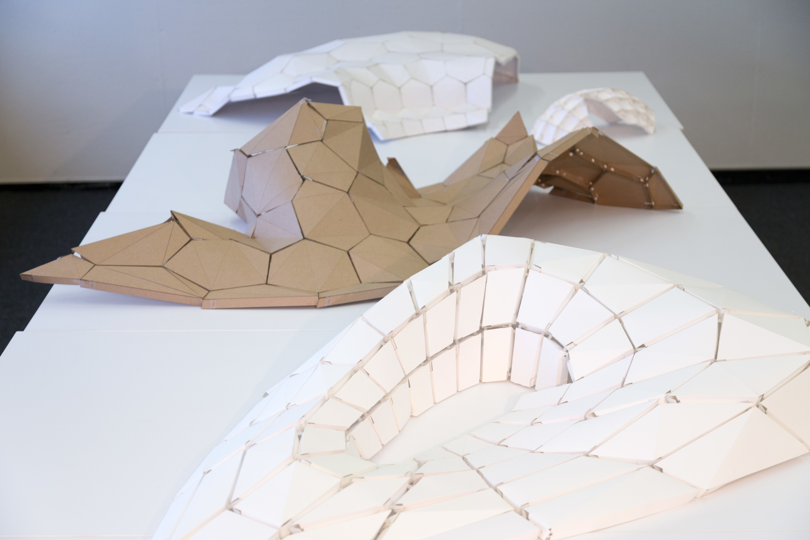 The City Form Lab’s research on grid structures has developed a novel building technology solution, which enables prefabricated double-curvature structures to be built with non-specialized labor at a very low cost. This is made possible by using standardized flat-sheet materials, limiting all fabrication to only two-dimensional cutting and relying on structural folding to achieve desired geometric forms.